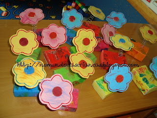 A flor estava presa com arame daqueles que se põem quando queremos ancadernar alguma coisa. O botão da flor era um bocado de rolha de cortiça também pintado.